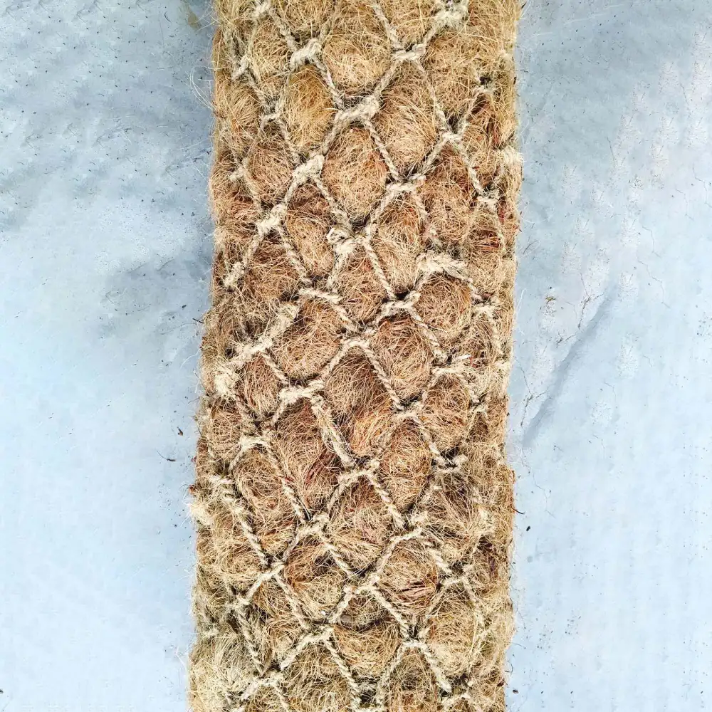 3. The coir netting is typically a 2″ x 2″ biodegradable mesh, designed for durability and easy rooting by plants.